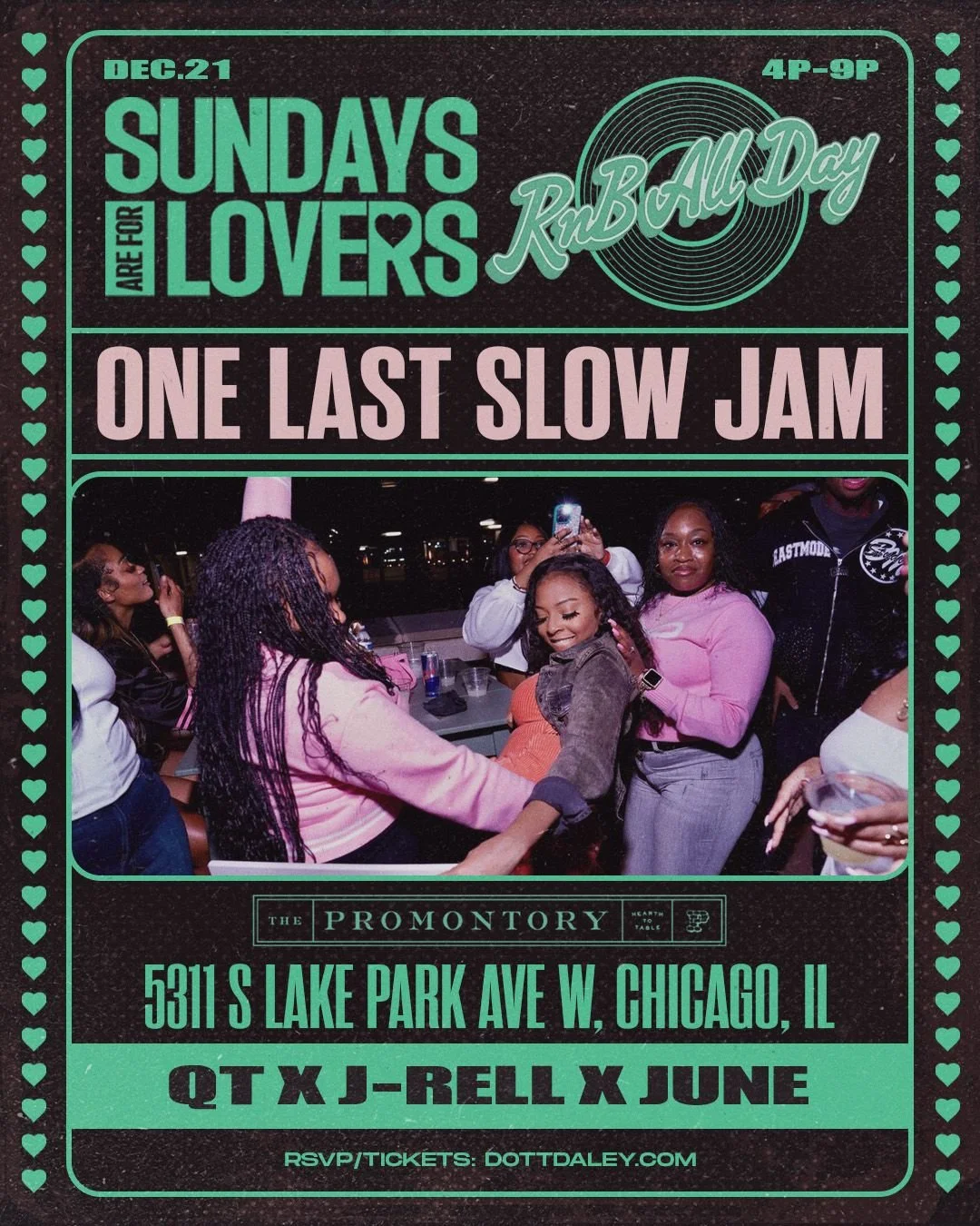 Chicago, this is your final chance to experience the city’s most loved R&B day party before The Promontory closes its doors. We’re ending this chapter with ONE LAST SLOW JAM — a celebration of vibes, nostalgia, connection, and everything that made Sundays Are For Lovers special.